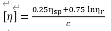 Bill Meyer方程也是一種一點法方程,通過一個濃度下樣品的相(xiàng)對粘度測試計(jì)算其特性粘度。該方法常用于PET等高分(fēn)子材料的測定。